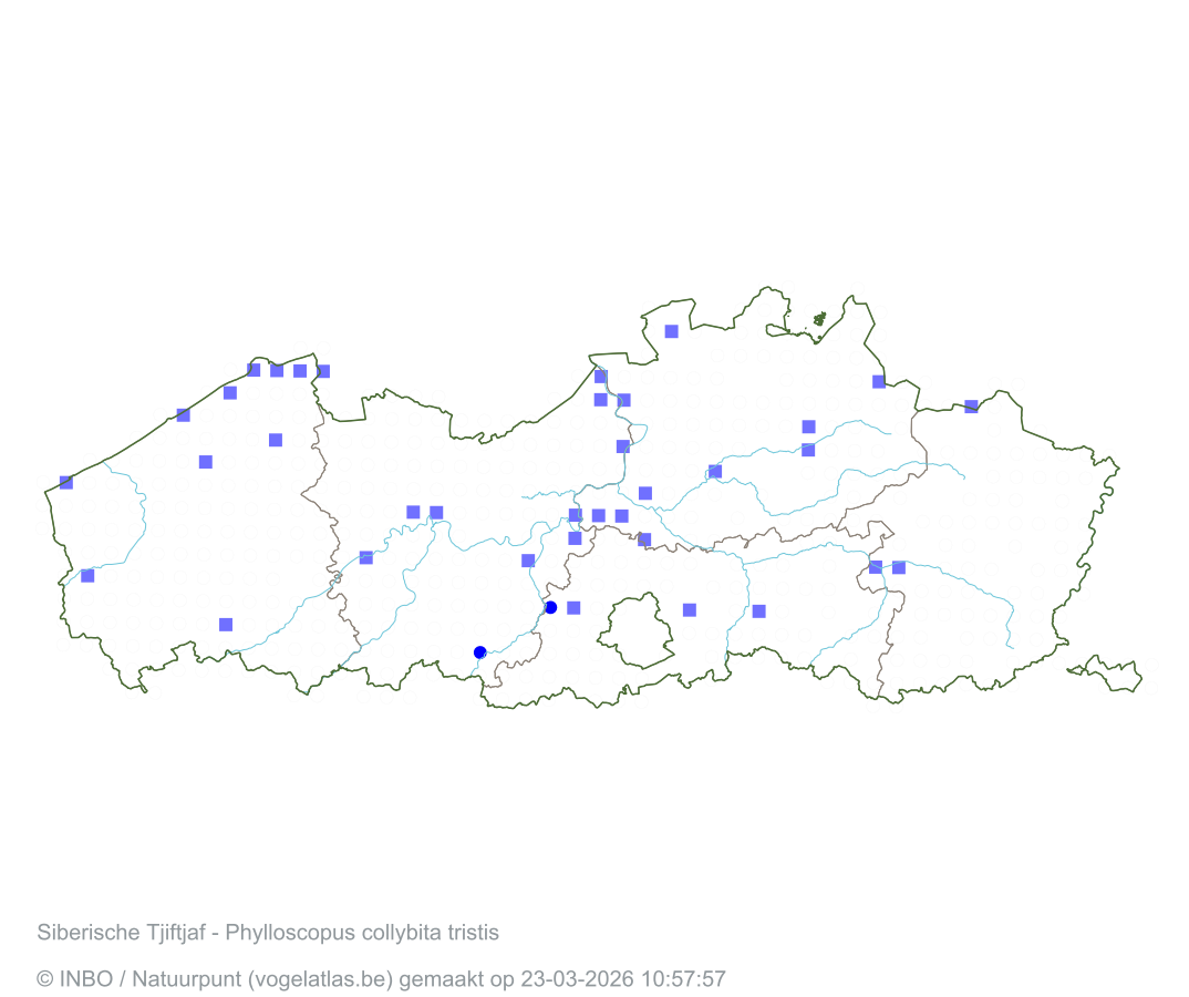 Siberische Tjiftjaf Latijnse naam Phylloscopus collybita tristis Engelse naam Siberian Chiffchaff Alle kaarten