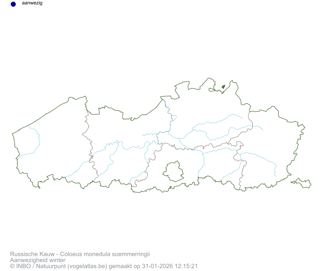 Russische Kauw Latijnse naam Coloeus monedula soemmerringii Engelse naam Western Jackdaw ssp soemmerringii Alle kaarten