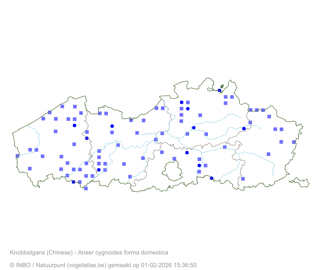 Knobbelgans (Chinese) Latijnse naam Anser cygnoides forma domestica Engelse naam Domestic Swan Goose Alle kaarten