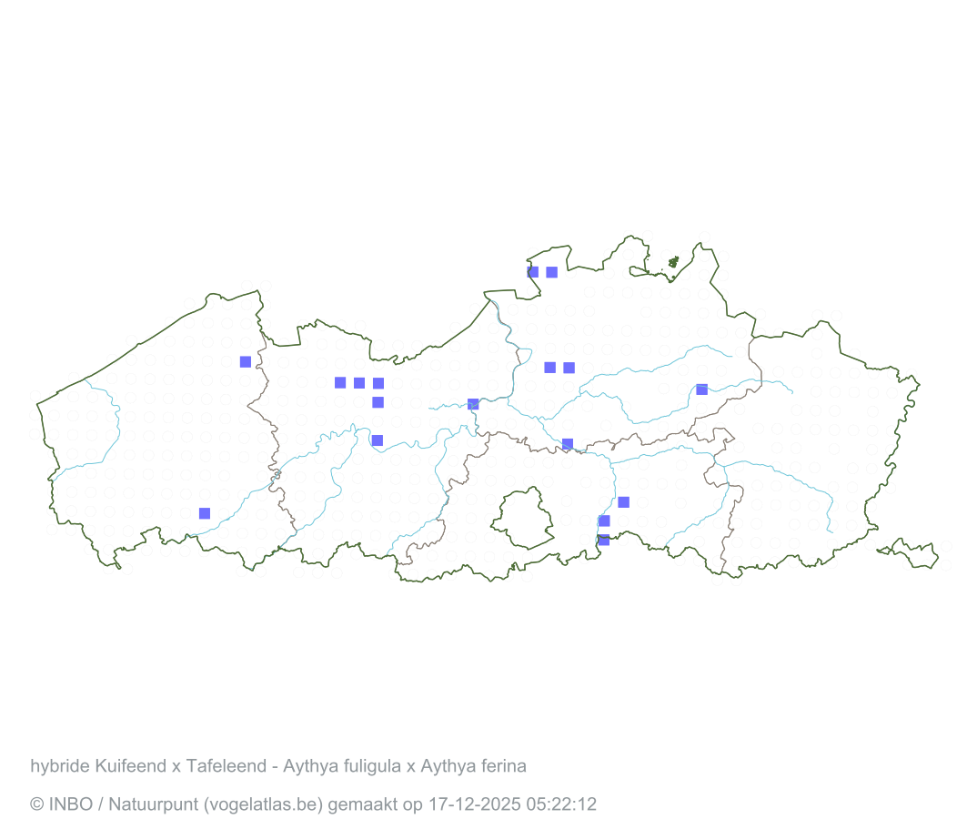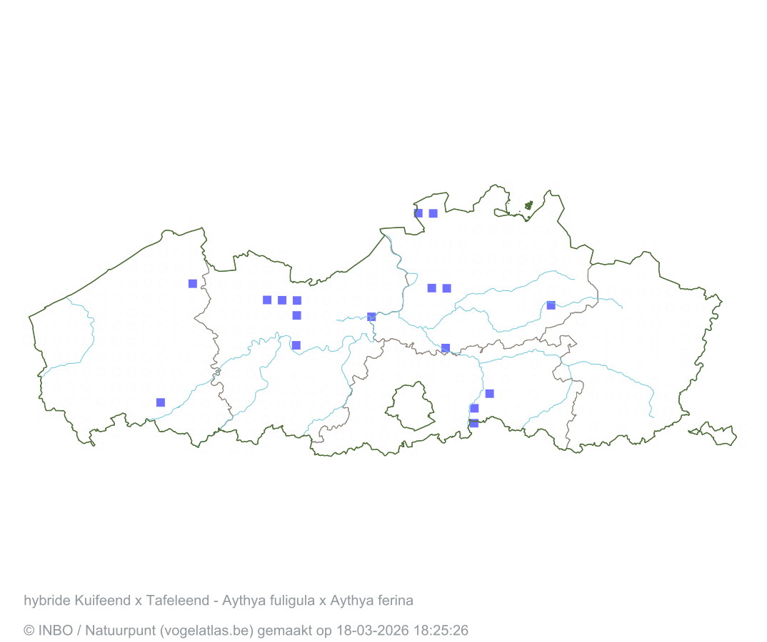 hybride Kuifeend x Tafeleend Latijnse naam Aythya fuligula x Aythya ferina Engelse naam Tufted Duck x Common Pochard Alle kaarten