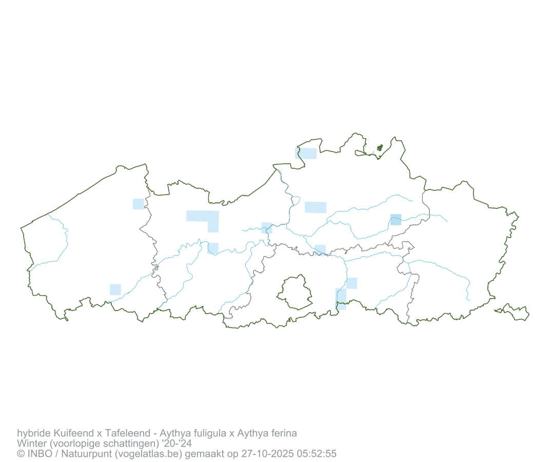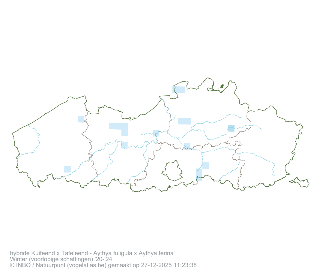 hybride Kuifeend x Tafeleend Latijnse naam Aythya fuligula x Aythya ferina Engelse naam Tufted Duck x Common Pochard Alle kaarten