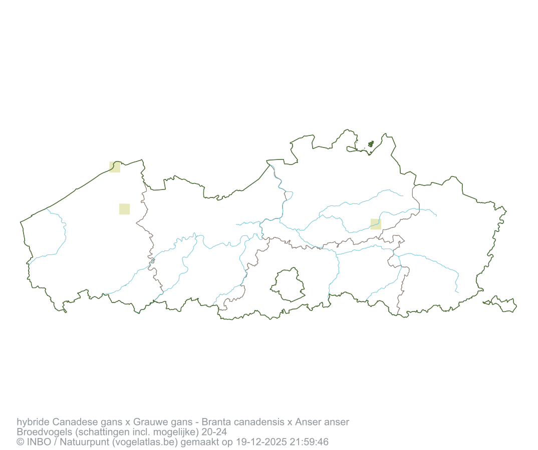 hybride Canadese gans x Grauwe gans Latijnse naam Branta canadensis x Anser anser Engelse naam Canada Goose x Greylag Goose Alle kaarten