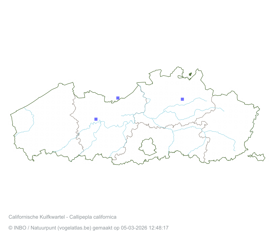 Californische Kuifkwartel Latijnse naam Callipepla californica Engelse naam California Quail Alle kaarten
