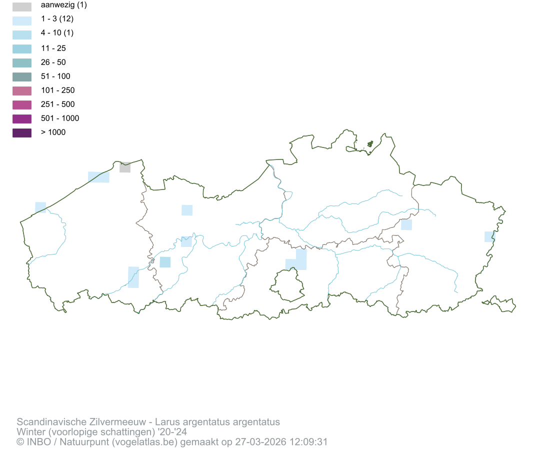 Scandinavische Zilvermeeuw Latijnse naam Larus argentatus argentatus Engelse naam European Herring Gull ssp argentatus Alle kaarten