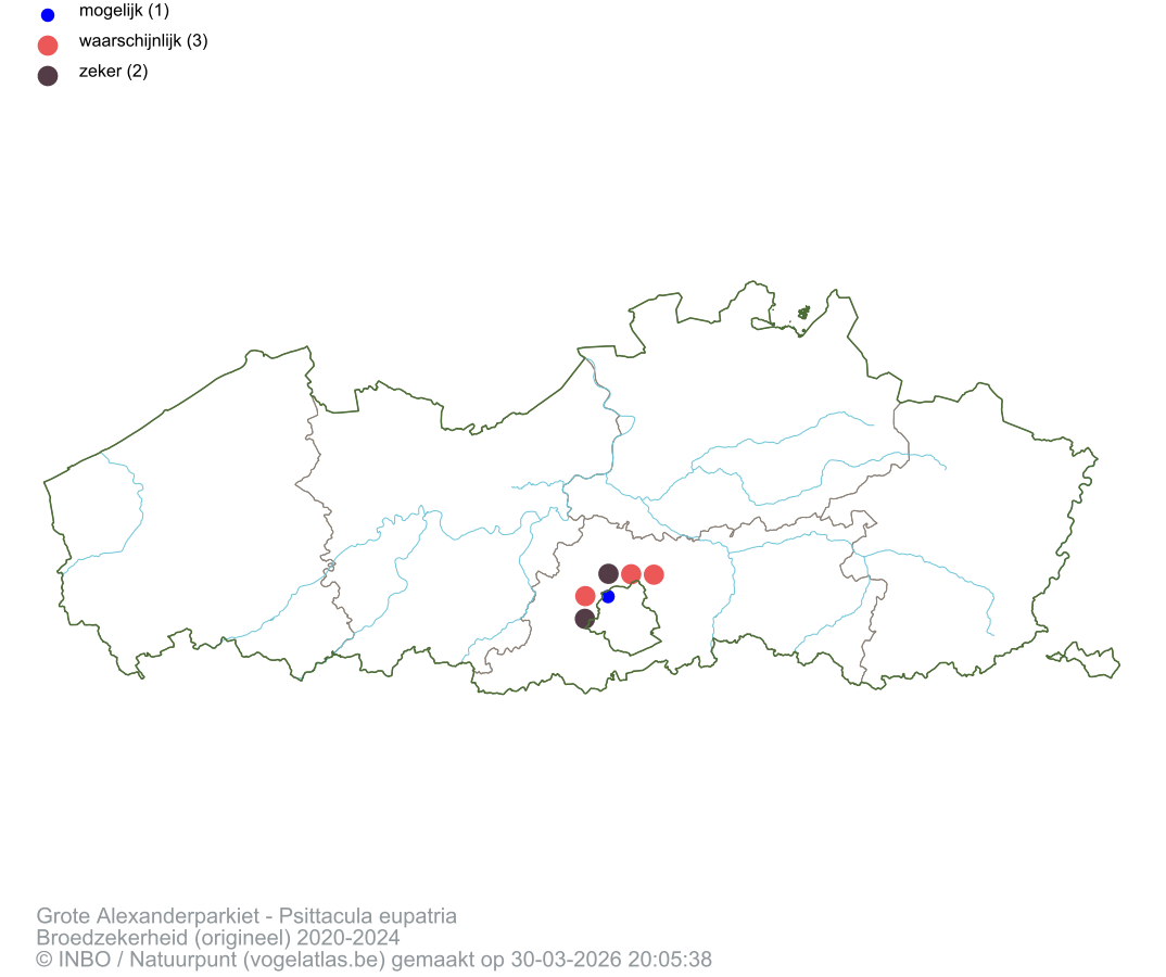 Grote Alexanderparkiet Latijnse naam Psittacula eupatria Engelse naam Alexandrine Parakeet Alle kaarten