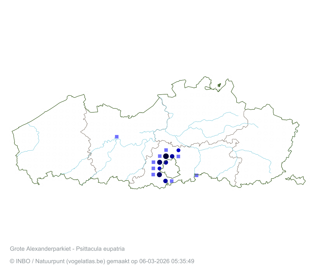 Grote Alexanderparkiet Latijnse naam Psittacula eupatria Engelse naam Alexandrine Parakeet Alle kaarten