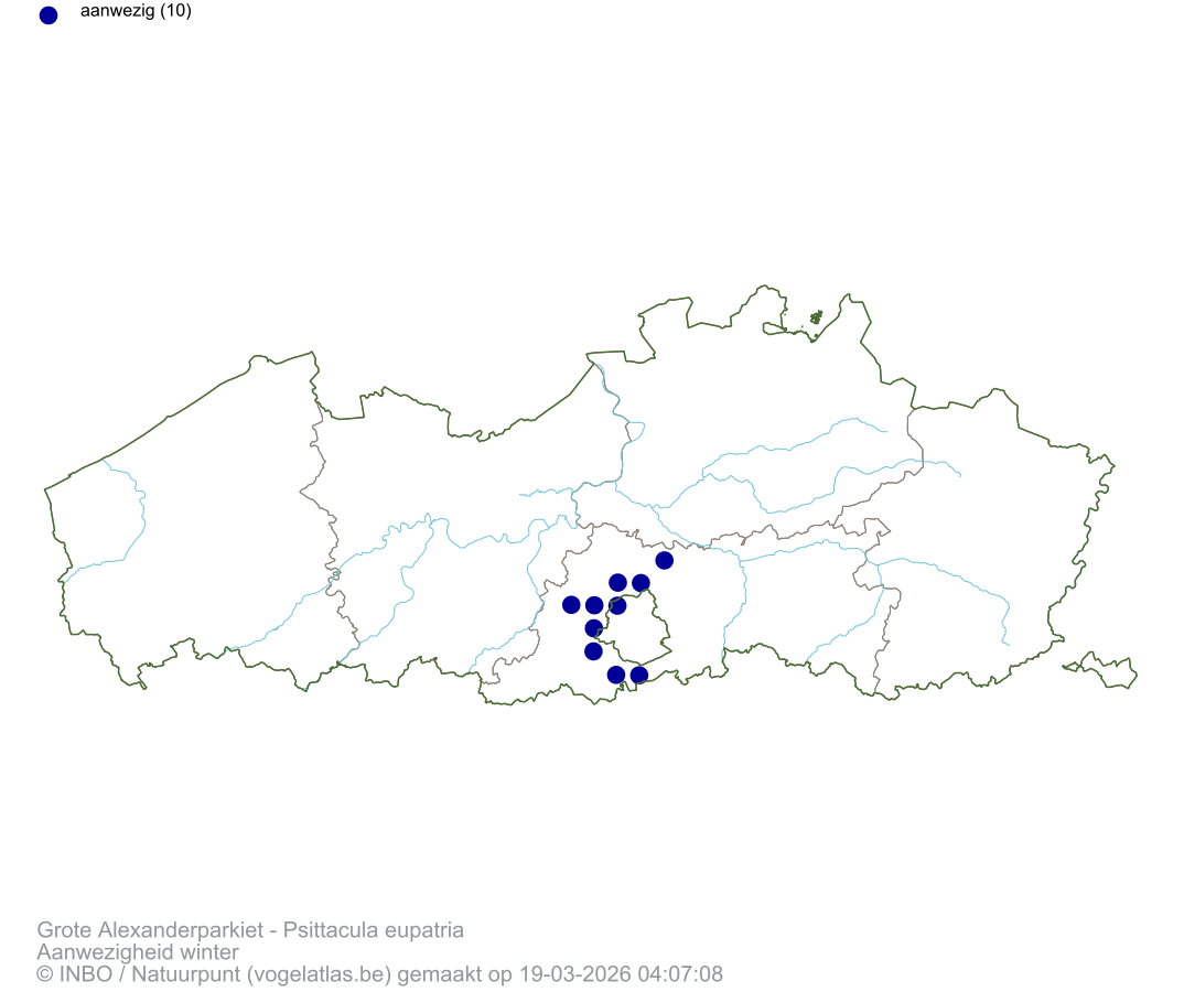 Grote Alexanderparkiet Latijnse naam Psittacula eupatria Engelse naam Alexandrine Parakeet Alle kaarten