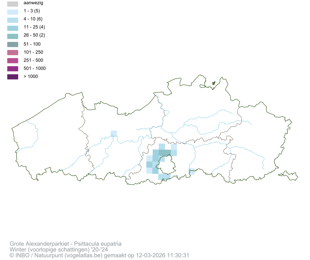 Grote Alexanderparkiet Latijnse naam Psittacula eupatria Engelse naam Alexandrine Parakeet Alle kaarten