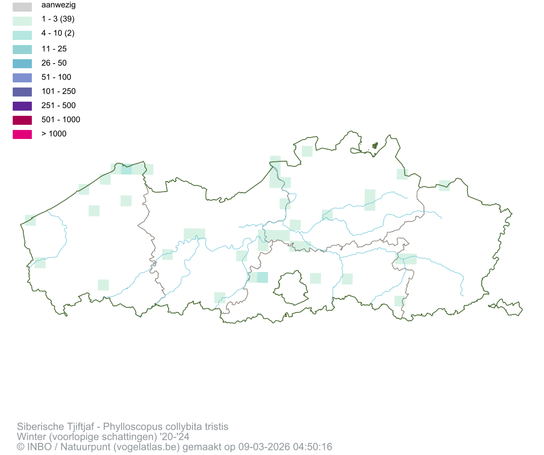 Siberische Tjiftjaf Latijnse naam Phylloscopus collybita tristis Engelse naam Siberian Chiffchaff Alle kaarten