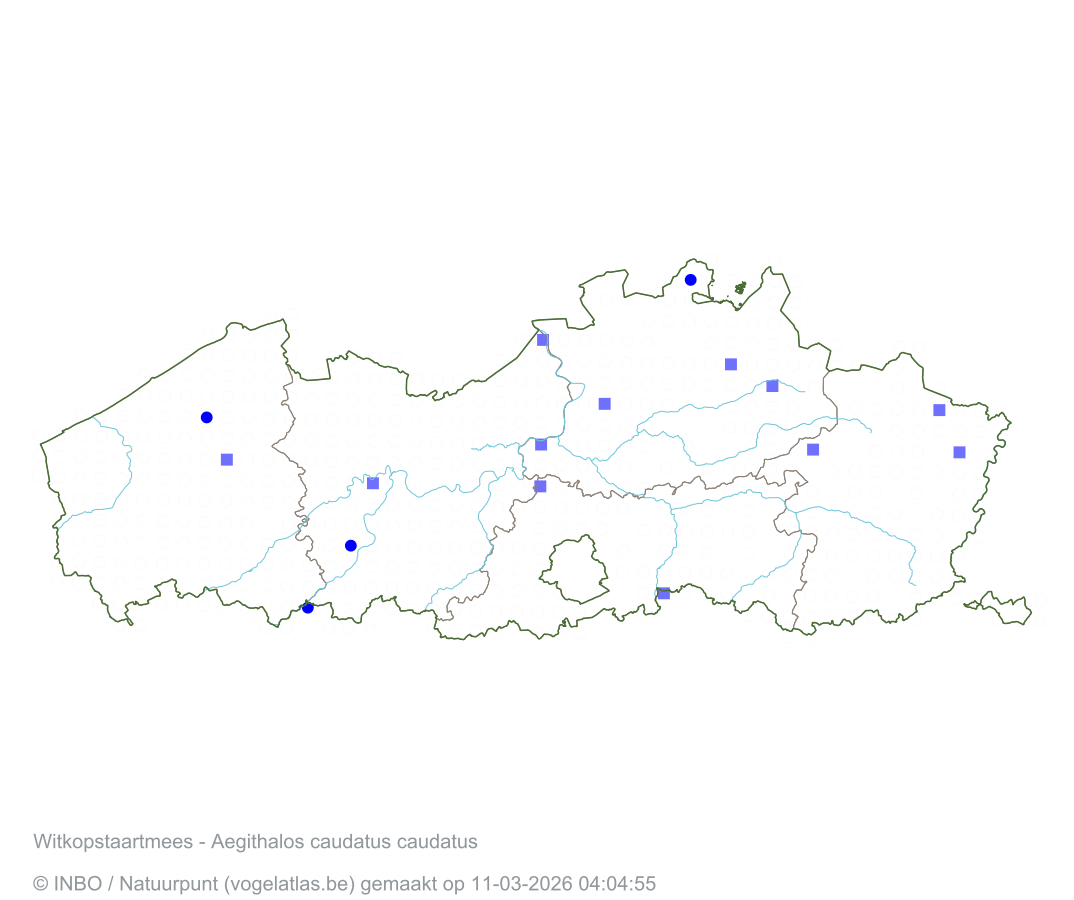 Witkopstaartmees Latijnse naam Aegithalos caudatus caudatus Engelse naam Long-tailed Tit ssp caudatus Alle kaarten