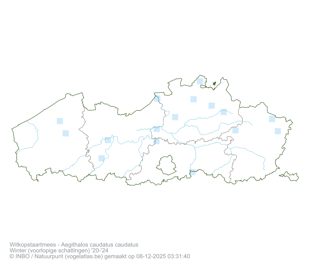 Witkopstaartmees Latijnse naam Aegithalos caudatus caudatus Engelse naam Long-tailed Tit ssp caudatus Alle kaarten