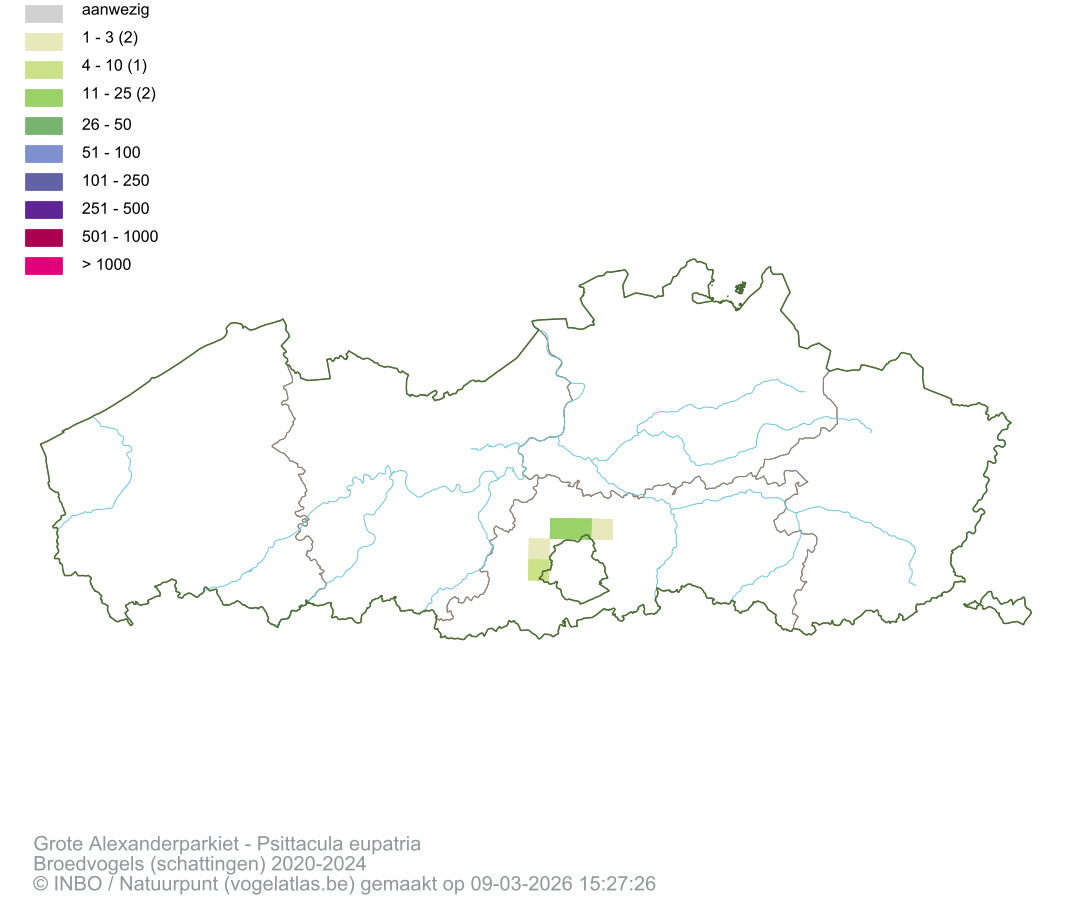 Grote Alexanderparkiet Latijnse naam Psittacula eupatria Engelse naam Alexandrine Parakeet Alle kaarten