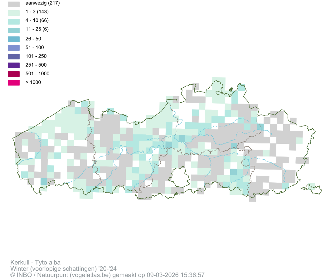 exemplaren per atlasblok o.b.v. alle beschikbare data